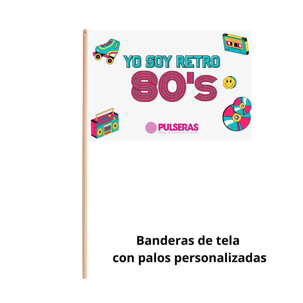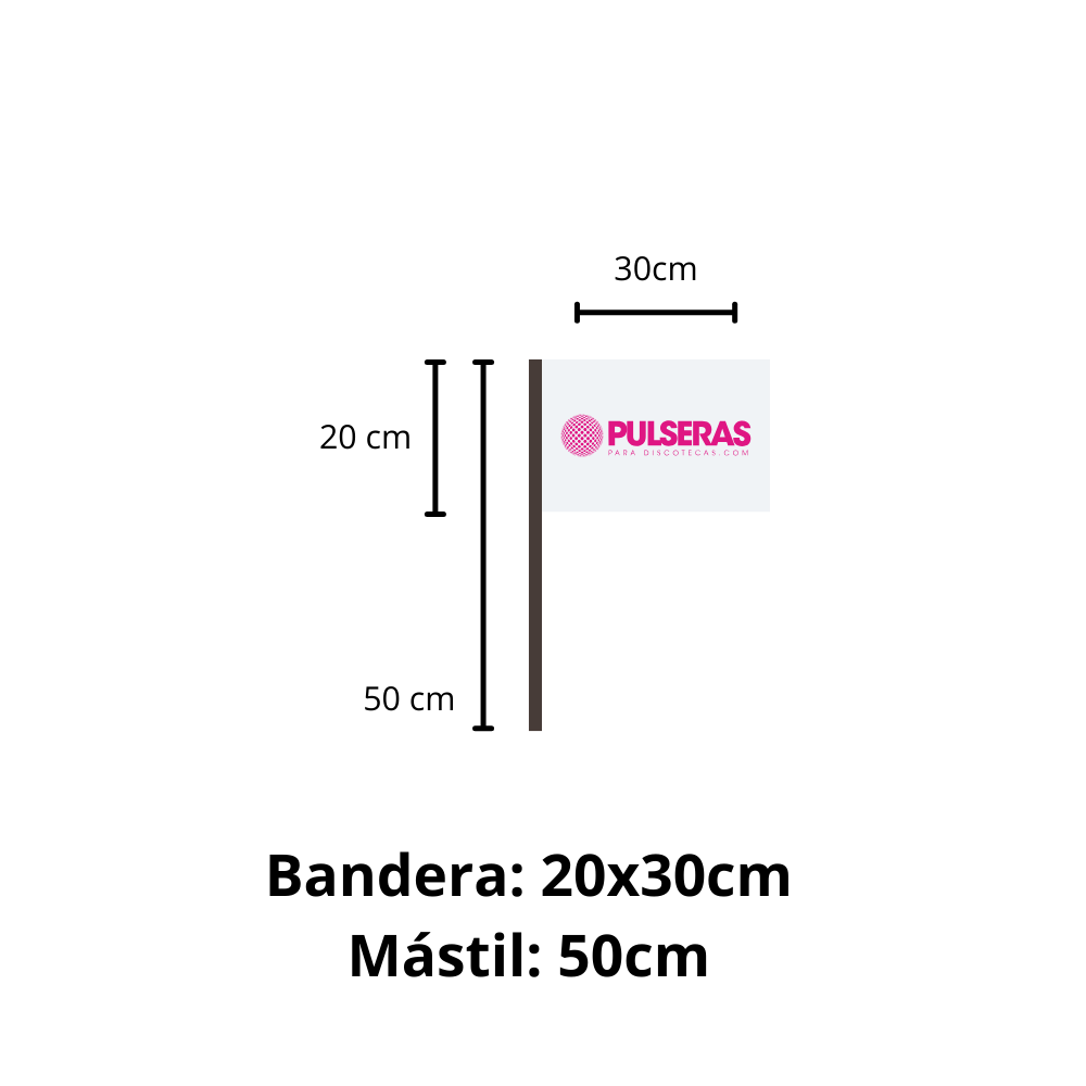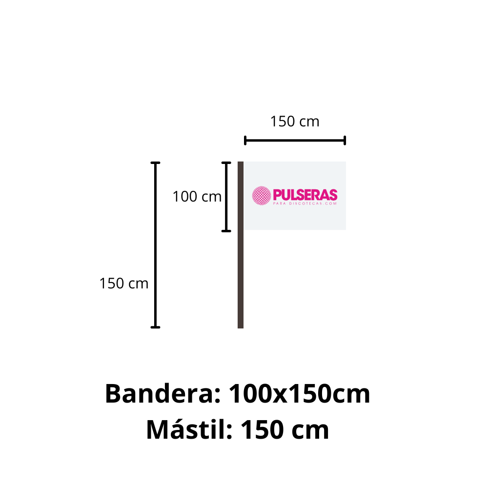 Bandeiras de tecido personalizadas com bastão. Se precisa de imprimir o seu logótipo, slogan ou design numa bandeira publicitária personalizada, conte com pulseirasparadiscotecas.pt. A bandeira que está prestes a comprar é uma bandeira retangular portátil, disponível horizontalmente em vários tamanhos. Fabricado em tecido 100% poliéster 115g/m², é fabricado sem costuras à volta com bainha concebida para colocar um bastão e facilitar a sua utilização e transporte.